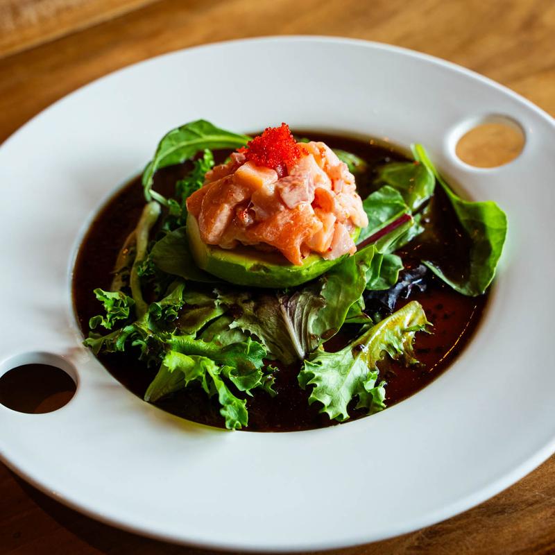 Seared pepper tuna, spring mixed greens with yuzu miso dressing